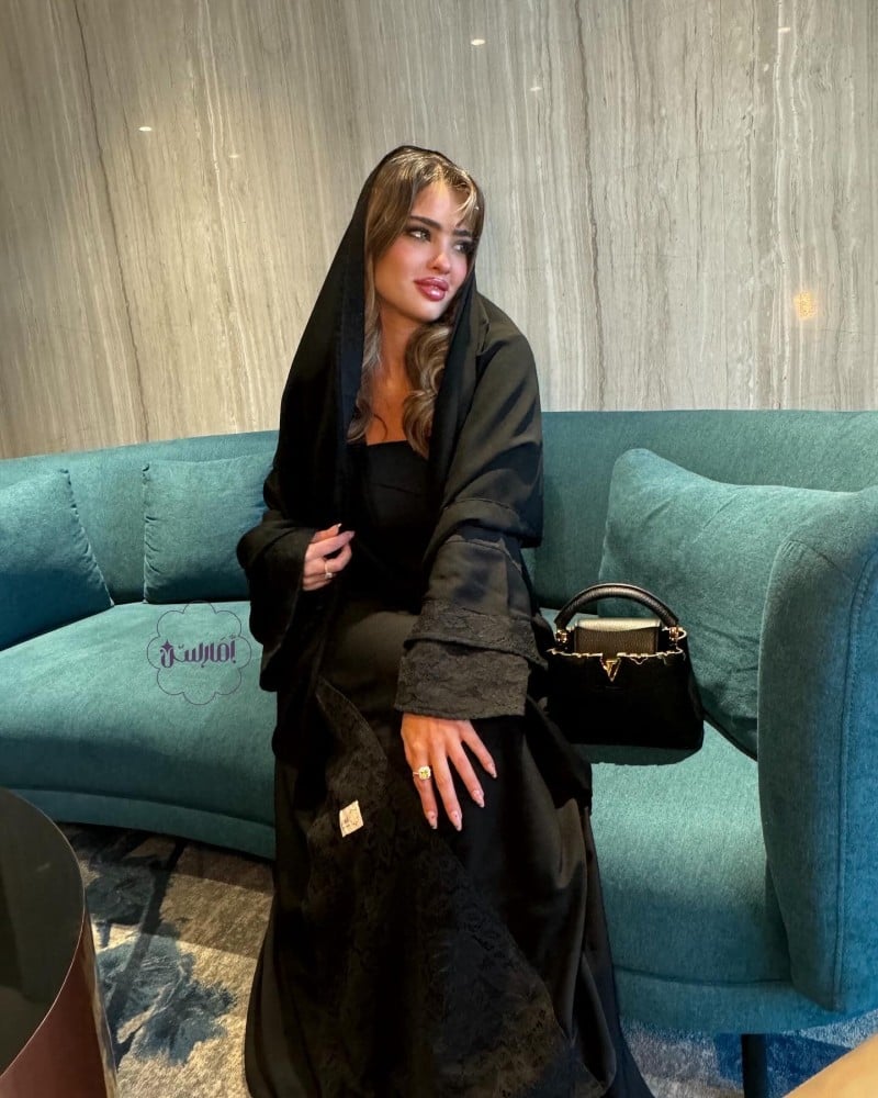 كريب صالونا كوري مع دانتيل اسود كوري من الجانب لحد الركبه والاكمام طبقتين